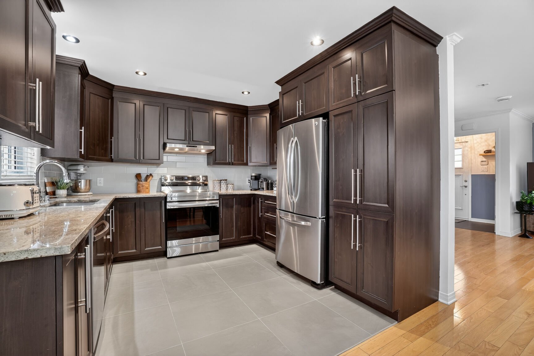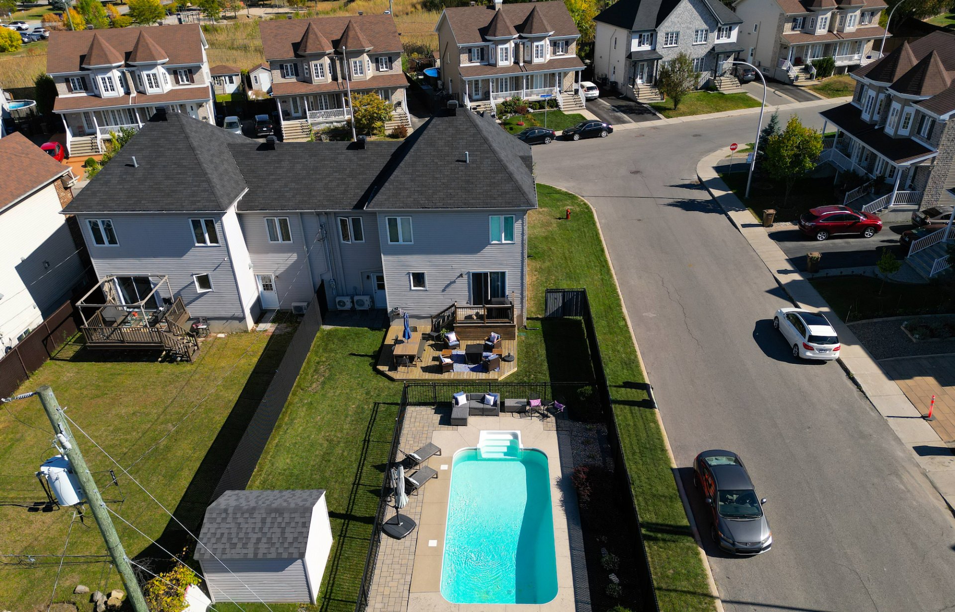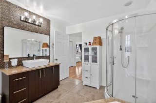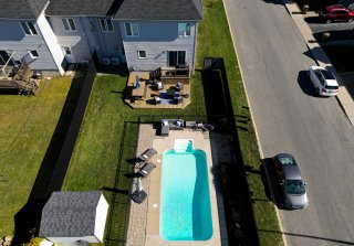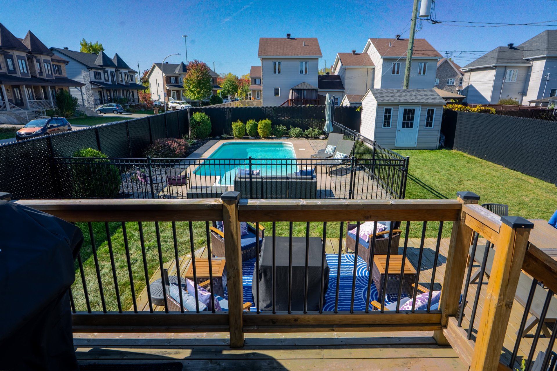 Inclus : Fixtures, stores, rideaux, lave-vaisselle (2026), deux thermopompes murales (2023 et 2025), piscine creusée et ses accessoires, le tout en bon état de fonctionnement mais donné sans garantie légale de qualité.